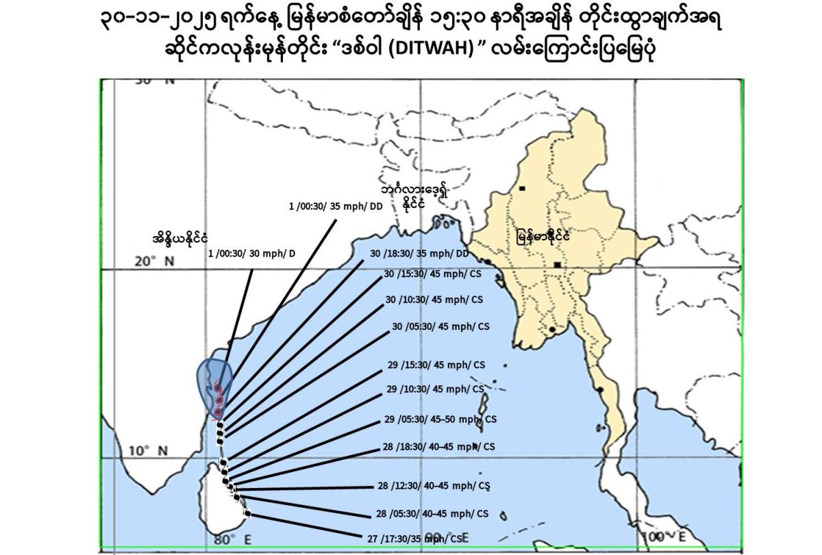 People should be awared due to the Cyclonic Storm “DITWAH” domestic aviation, near-shore and offshore fishing vessels, and ships off and along Myanmar coasts and offshore are also advised to take precautions.