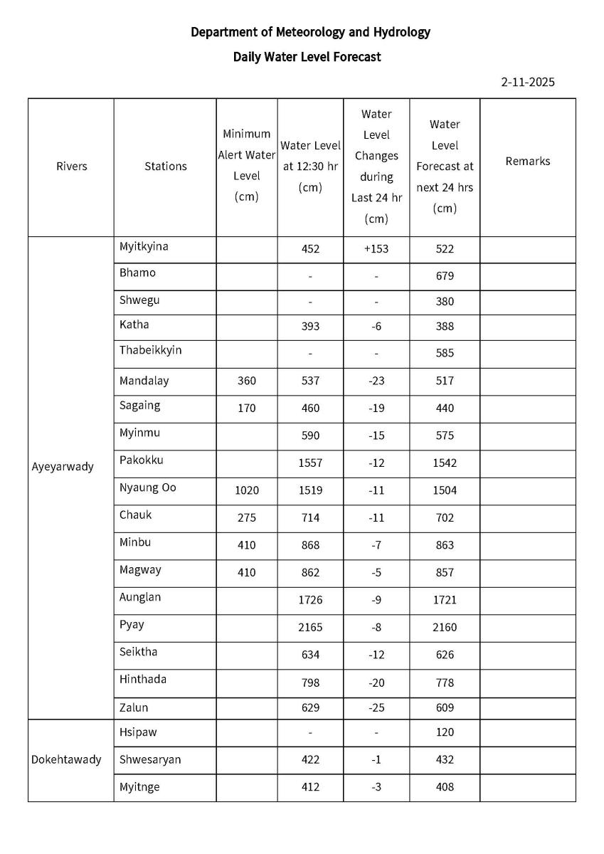 Daily Water Level Forecast (Issued at 14:00 hr MST on 2-11-2025)