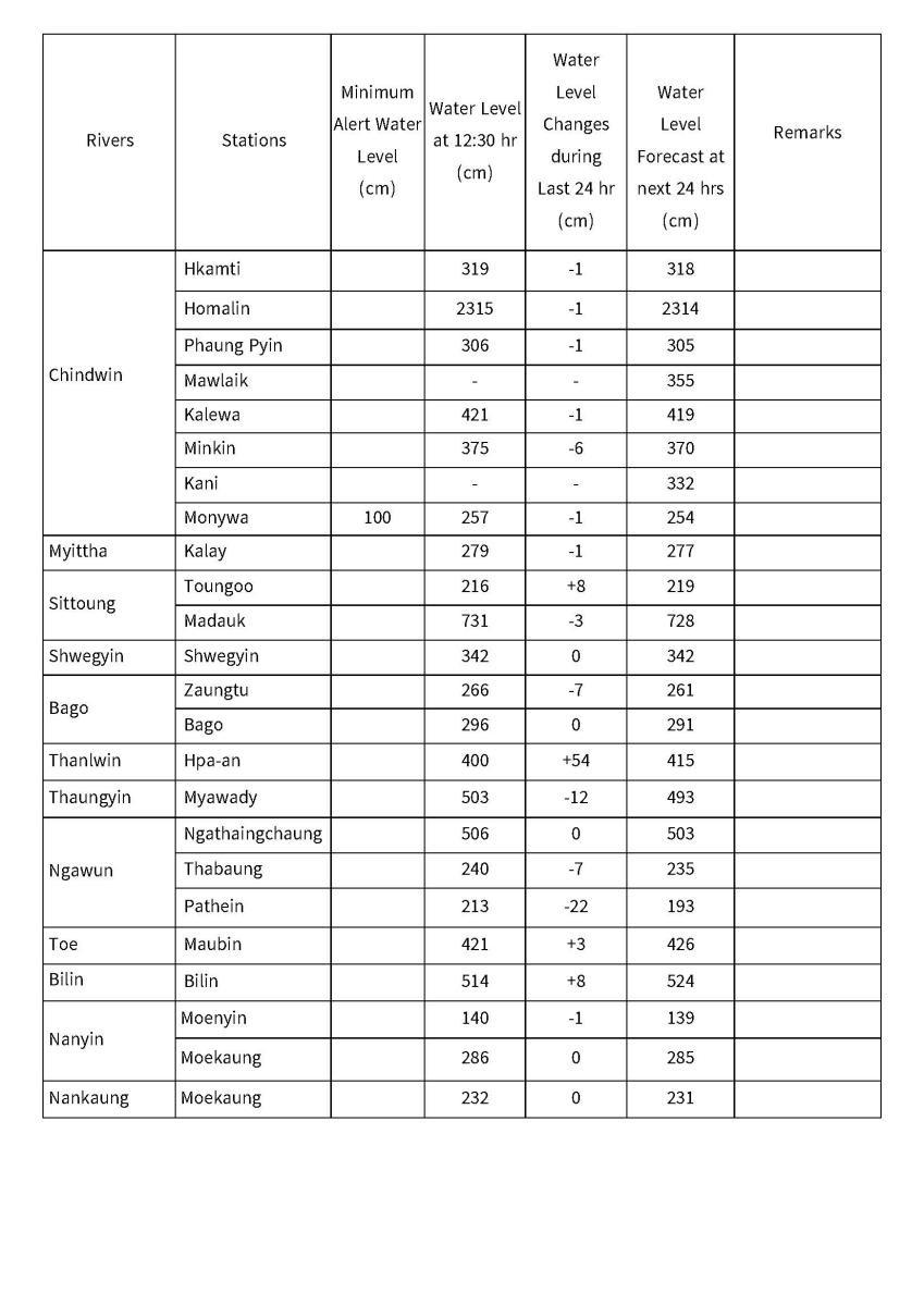 Daily Water Level Forecast (Issued at 14:00 hr MST on 5-12-2025)