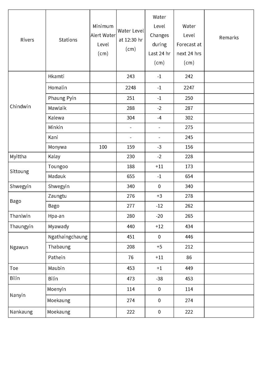 Friday, January 9, 2026 - 14:00Department of Meteorology and Hydrology Daily Water Level Forecast (Issued at 14:00 hr MST on 9-1-2026) Daily Water Level Forecast for (8-1-2026) Daily Water Level Forecast for (7-1-2026) Daily Water Level Forecast for (6-1-2026)