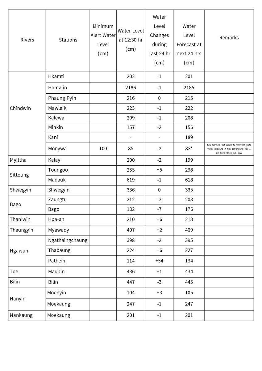 Daily Water Level Forecast (Issued at 14:00 hr MST on 26-2-2026)