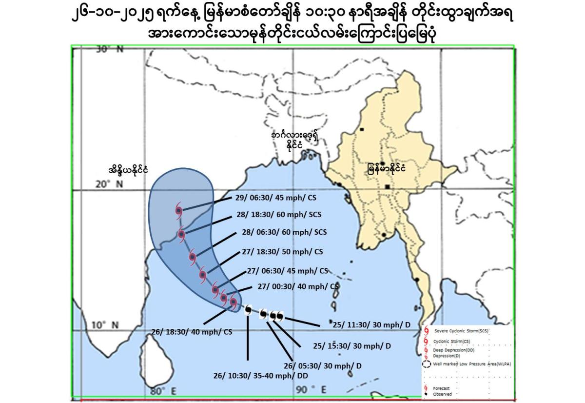 It does not intend to move towards Myanmar coasts at the present stage and therefore the Deep Depression is coded as yellow stage.