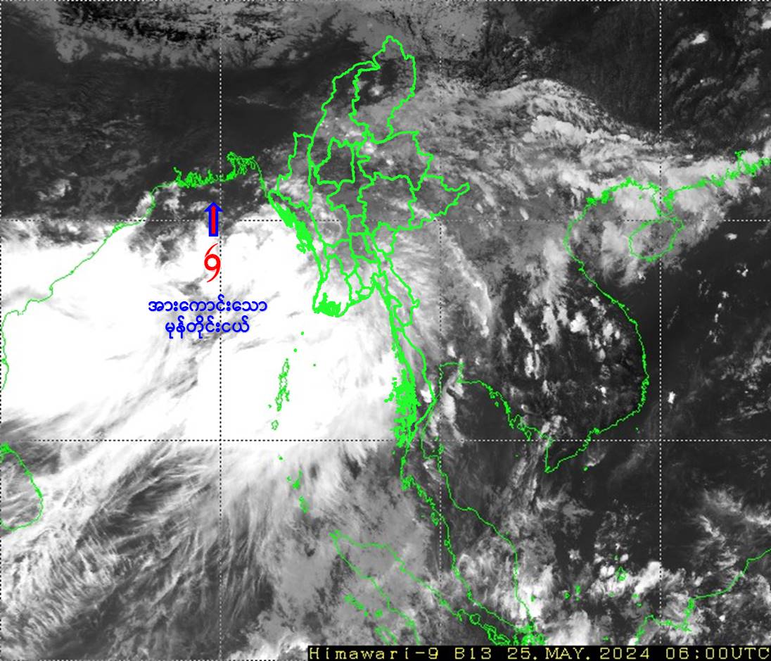Under the influence of deep depression, rain or thundershowers will be fairly widespread to widespread in Naypyitaw, Sagaing, Mandalay, Magway, Bago, Yangon, Ayeyarwady, Taninthayi Regions and Kachin, Chin, Rakhine, Kayin, Mon States with likelihood of regionally and isolated heavyfalls in some Regions and States along with strong winds from today afternoon to 27-5-2024. Occasional squalls with rough seas will be experienced in Gulf of Mottama, off and along Mon-Taninthayi Coasts. Surface wind speed in squall may reach 40-45 mph and wave height will be about 9-12 feet from 25-5-2024 to 26-5-2024. Frequent squalls with rough to very rough seas will be experienced in Deltaic, off and along Rakhine Coasts. Surface wind speed in squall may reach 50-60 mph and wave height will be about 13-18 feet from 25-5-2024 to 26-5-2024.