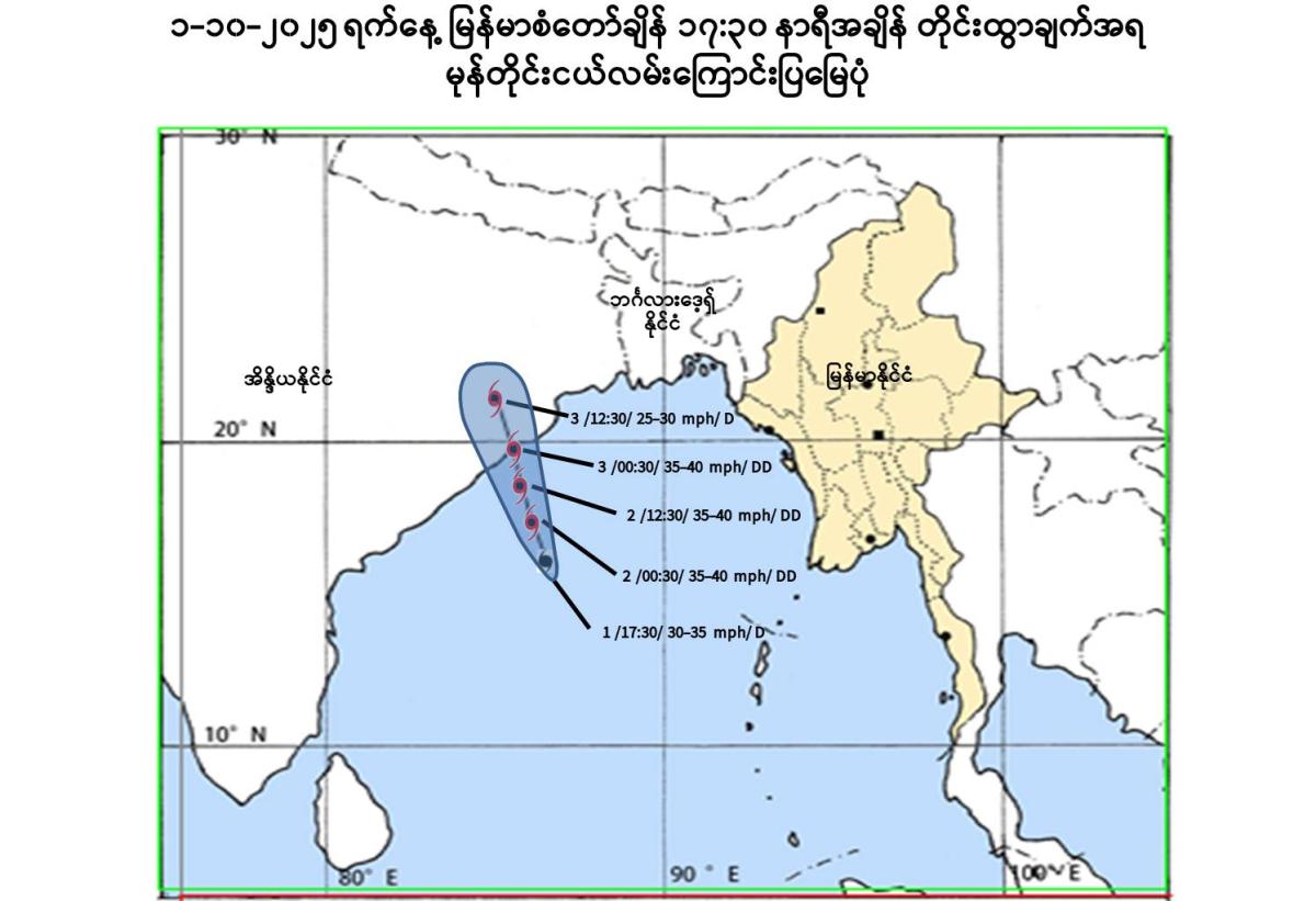 It is likely to continue to move north-northwestwards, intensify further into a deep depression and cross Odisha and adjoining Andhra Pradesh coasts between Gopalpur and Paradip arround 3-10-2025. Due to the depression rain or thundershowers will be fairly widespread to widespread in Naypyitaw, Yangon, Mandalay, Bago, Magway, Sagaing, Ayeyarwady, Taninthayi Regions and Kachin, Kayah, Kayin, Chin, Mon, Rakhine, Shan States with isolated heavyfalls in some Regions and States from tonight  to next 24 hours. Occassional squalls with rough sea will be experienced Deltaic, off and along Rakhine Coasts. Surface wind speed in squalls may reach 35 mph. Wave height will be about 10-12 feet in Deltaic, off and along Rakhine Coasts. Squalls with moderate to rough sea are likely at times in Gulf of Mottama, off and along Mon-Taninthayi Coasts. Surface wind speed in squalls may reach 25-30 mph. Wave height will be about 8-10 feet in Gulf of Mottama, off and along Mon-Taninthayi Coasts.