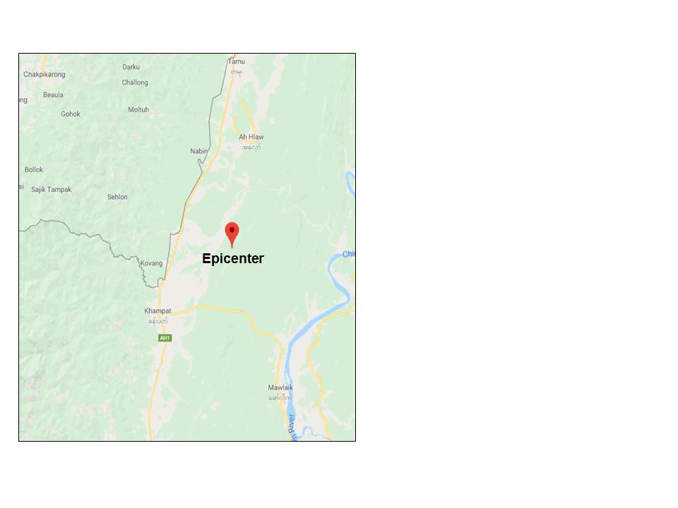 A slight earthquake of magnitude (4.2) Richter Scale with its epicenter inside Myanmar (about (20)miles northwest of Mawlaik), latitude 23.90°N, longitude 94.30°E, depth (110) kilometer, about (22) miles south of Tamu seismological observatory was recorded at (22)hr (51)min (24)sec M.S.T on 6th February, 2019.