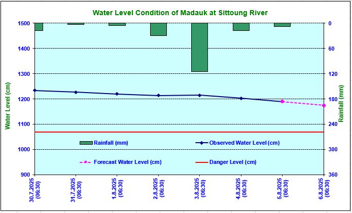 Tuesday, August 5, 2025 - 07:30 Hydrograph for Madauk Hydrograph for Hpaan Language English Flood Bulletin