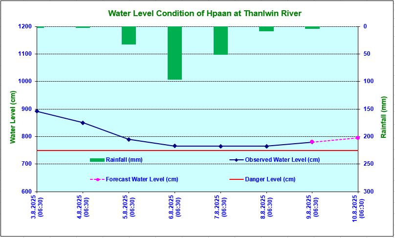 Saturday, August 9, 2025 - 07:30 Hydrograph for Toungoo Hydrograph for Madauk Hydrograph for Hpaan Language English Flood Bulletin