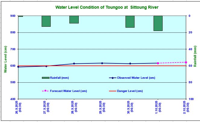 Wednesday, October 1, 2025 - 07:00 Hydrograph for Taungoo Hydrograph for Madauk Language English Flood Bulletin