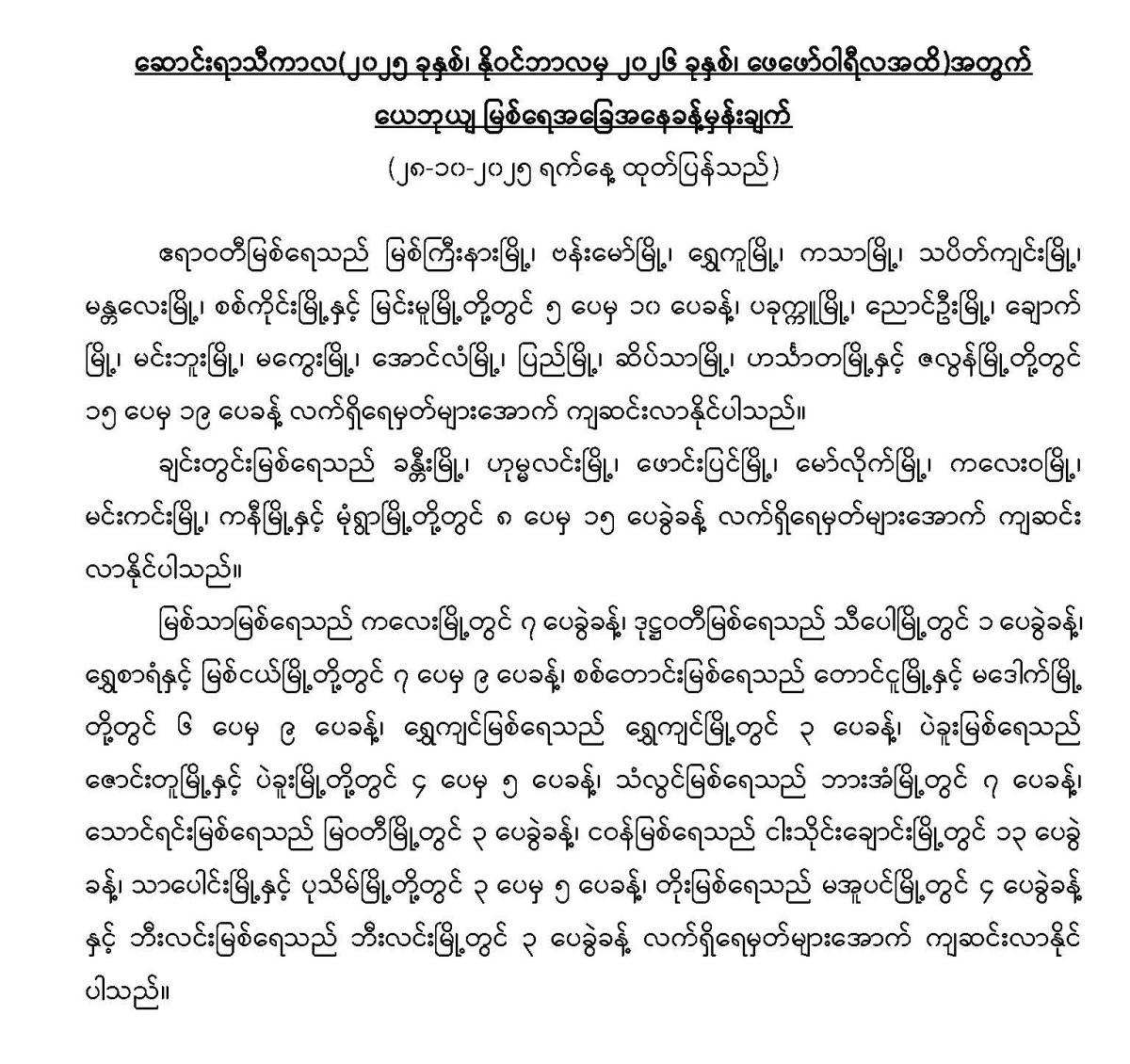 ၂၄-၂-၂၀၂၆:ယနေ့မြန်မာစံတော်ချိန် ၀၅:၃၀ နာရီအချိန် တိုင်းထွာချက်များအရ ဘင်္ဂလား ပင်လယ်အော်တောင်ပိုင်းတွင် ဖြစ်ပေါ်နေသော လေဖိအားနည်းရပ်ဝန်း (Low Pressure Area) သည် ဆက်လက် တည်ရှိနေပါသည်။ အဆိုပါ လေဖိအားနည်းရပ်ဝန်းသည် နောက် ၂၄ နာရီအတွင်း အရှေ့မြောက်ဘက်သို့ ရွေ့လျားနိုင်ပြီး တဖြည်းဖြည်း အားလျော့သွားနိုင်သည်ဟု ခန့်မှန်းရပါသည်။ ဘင်္ဂလားပင်လယ်အော်မြောက်ပိုင်း တွင် တိမ်အနည်းငယ် ဖြစ်ထွန်းနေပြီး ကပ္ပလီပင်လယ်ပြင်နှင့် ကျန်ဘင်္ဂလားပင်လယ်အော်တို့တွင် တိမ်အသင့် အတင့်မှ တိမ်ထူထပ်နေပါသည်။