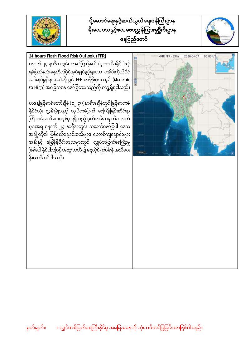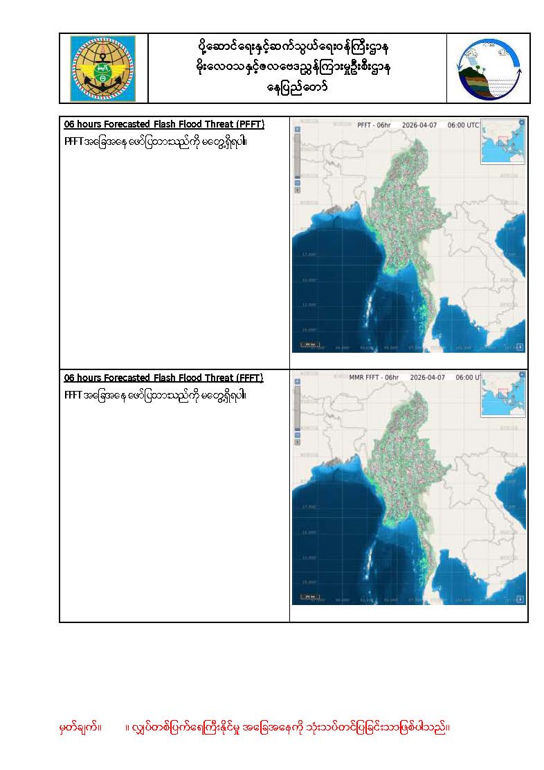 (၁၄-၄-၂၀၂၆) ဘင်္ဂလားပင်လယ်အော်အနောက်တောင်ပိုင်းတွင် တိမ်ထူထပ်နေပြီး ကပ္ပလီ ပင်လယ်ပြင်တောင်ပိုင်းနှင့် ဘင်္ဂလားပင်လယ်အော်အရှေ့တောင်ပိုင်းတို့တွင် တိမ်အနည်းငယ်မှ တိမ်အသင့် အတင့် ဖြစ်ထွန်းနေကာ ကပ္ပလီပင်လယ်ပြင်မြောက်ပိုင်းနှင့် ကျန်ဘင်္ဂလားပင်လယ်အော်တို့တွင် အများအားဖြင့် သာယာနေပါသည်။