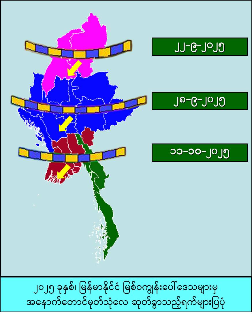 အနောက်တောင်မုတ်သုံလေသည် ဘင်္ဂလားပင်လယ်အော်အရှေ့မြောက်ပိုင်း၊ အရှေ့အလယ်ပိုင်းနှင့် မြန်မာနိုင်ငံမြစ်ဝကျွန်းပေါ်ဒေသများမှ ဆုတ်ခွာခဲ့ပြီး ဖြစ်ပါသည်။