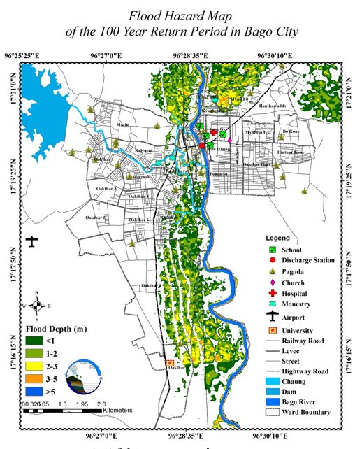 -ပဲခူးမြို့အတွက် နှစ်(၁၀၀)အတွင်း ဖြစ်ပေါ်လာနိုင်သည့် ရေလွှမ်းမိုးမှုပြမြေပုံ
