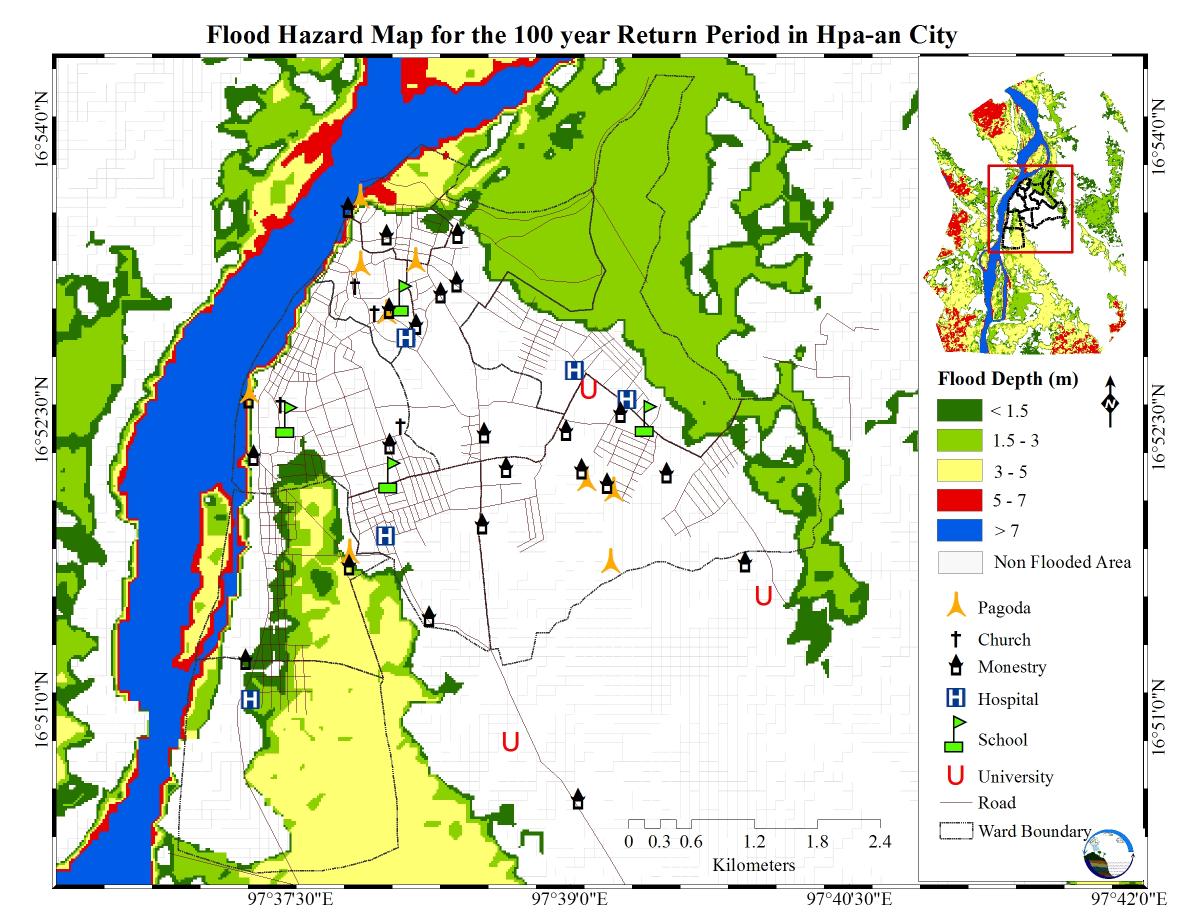 -ဘားအံမြို့အတွက် နှစ်(၁၀၀)အတွင်း ဖြစ်ပေါ်လာနိုင်သည့် ရေလွှမ်းမိုးမှုပြမြေပုံ