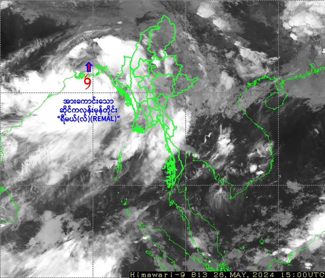 ၂၀၂၄ ခုနှစ်၊ မေလ ၂၆ ရက်နေ့ မြန်မာစံတော်ချိန်(၂၃:၀၀)နာရီအချိန်တွင် ထုတ်ပြန်သည့် အားကောင်းသောဆိုင်ကလုန်းမုန်တိုင်း(Severe Cyclonic Storm) “ရီမယ်(လ်)” (REMAL)သတင်း