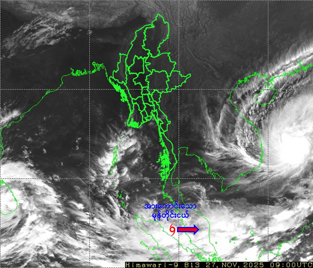 (၁) ယနေ့မြန်မာစံတော်ချိန် ၁၅:၃၀ နာရီအချိန် တိုင်းထွာချက်များအရ အင်ဒိုနီးရှား နိုင်ငံအရှေ့မြောက်ပိုင်းနှင့် ယင်းနှင့်ဆက်စပ်လျက်ရှိသော မလက္ကာရေလက်ကြား တို့တွင် ဖြစ်ပေါ်နေသော အားကောင်းသောမုန်တိုင်းငယ် (Deep Depression) သည် အရှေ့ဘက်သို့ ရွေ့လျားခဲ့ပြီး မလက္ကာရေလက်ကြားသို့ ရောက်ရှိခဲ့ပြီး မြန်မာ နိုင်ငံ၊ ကော့သောင်းမြို့ (Kawthaung) ၏ တောင်ဘက် ရေမိုင် ၃၈၀ မိုင်ခန့်၊ မလေးရှားနိုင်ငံ၊ ပီနန်မြို့ (Penang) ၏ တောင်-အနောက်တောင်ဘက် ရေမိုင် ၁၁၀ မိုင်ခန့်နှင့် အင်ဒိုနီးရှားနိုင်ငံ၊ ကူတာမတ်ကွာမြို့(Kuta Makmur)၏ အရှေ့ တောင်ဘက် ရေမိုင် ၁၇၀ မိုင်ခန့်အကွာ ပင်လယ်ပြင်ကို ဗဟိုပြုနေပါသည်။