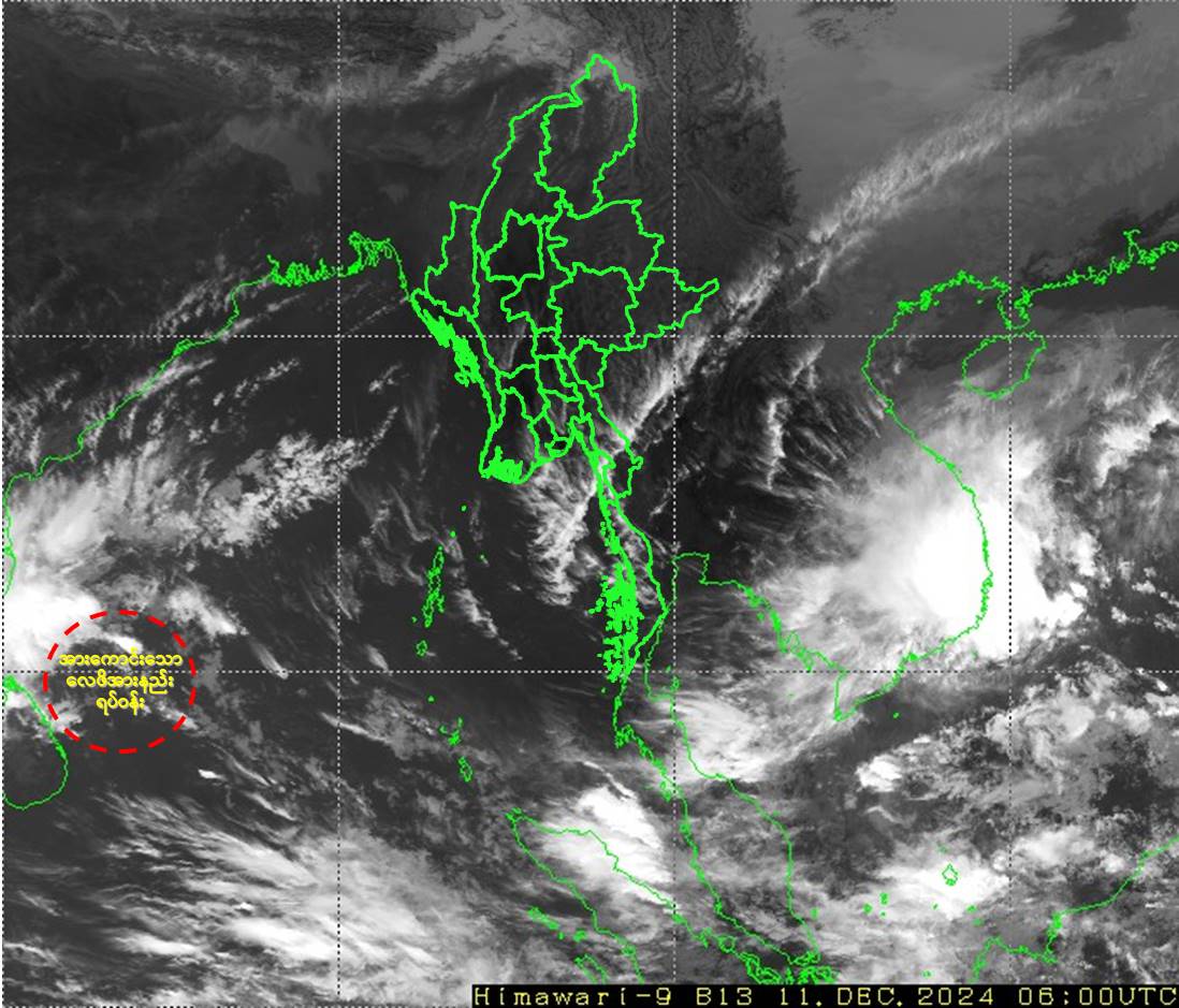 “ယနေ့မြန်မာစံတော်ချိန် (၁၂:၃၀)နာရီအချိန် တိုင်းထွာချက်များအရ ဘင်္ဂလားပင်လယ်အော် အနောက်တောင်ပိုင်း (သီရိလင်္ကာနိုင်ငံကမ်းလွန်)တွင် ဖြစ်ပေါ်နေသော အားကောင်းသော လေဖိအားနည်းရပ်ဝန်း(Well Marked Low Pressure Area)သည် ဆက်လက်တည်ရှိနေ ပါသည်။ အဆိုပါ အားကောင်းသော လေဖိအားနည်းရပ်ဝန်းသည် အနောက်-အနောက် မြောက်ဘက်သို့ ရွေ့လျားနိုင်ပြီး၊ နောက်(၁၂) နာရီအတွင်း သီရိလင်္ကာနိုင်ငံကမ်းခြေ-အိန္ဒိယ နိုင်ငံ၊ တမီးလ်နာဒူးကမ်းခြေတို့သို့ ရောက်ရှိနိုင် သည်ဟု ခန့်မှန်းရပါသည်။”