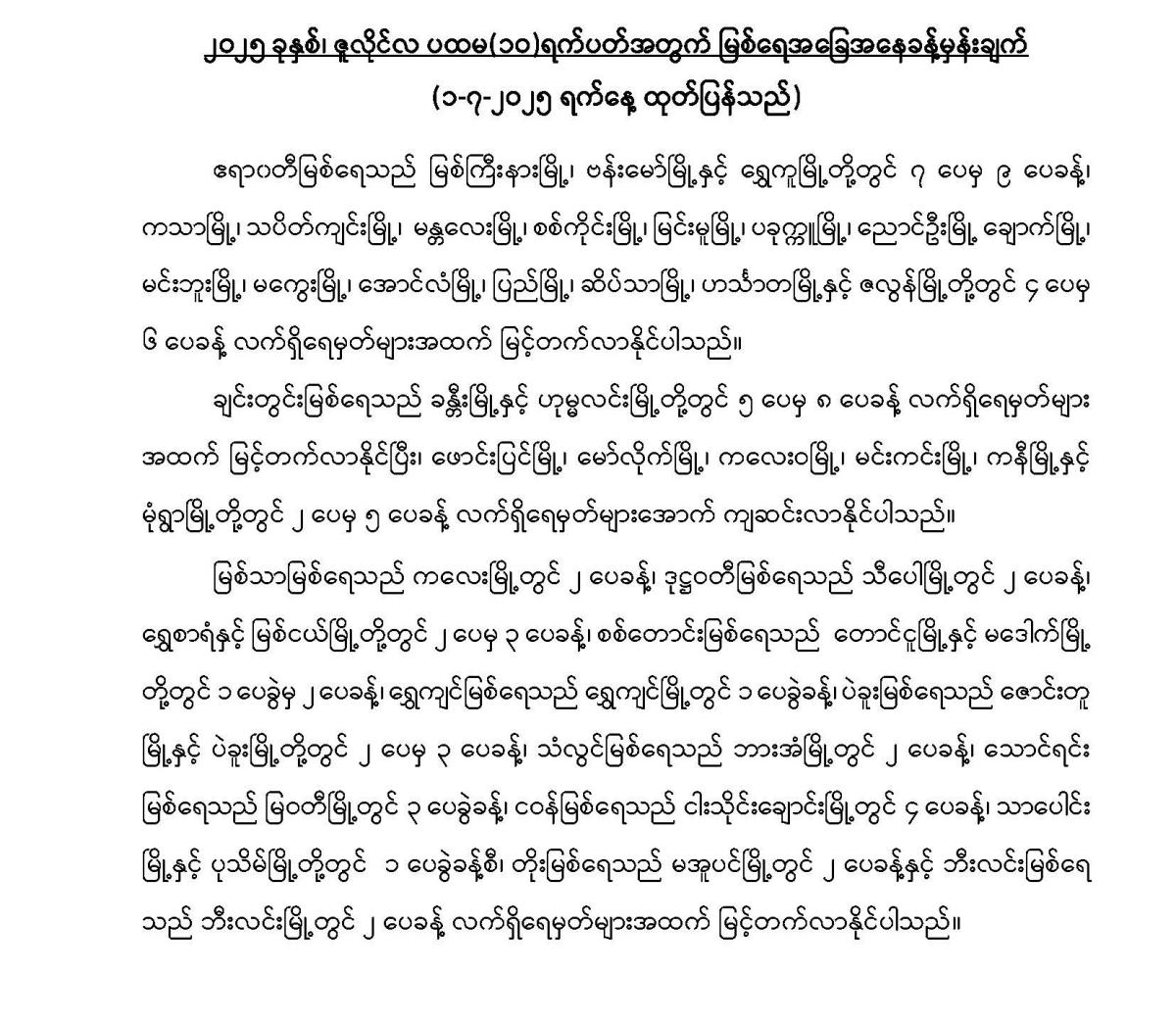၂၅-၁၀-၂၀၂၅: ယနေ့မြန်မာစံတော်ချိန် ၁၁:၃၀ နာရီအချိန် တိုင်းထွာချက်များအရ ဘင်္ဂလားပင်လယ်အော်အရှေ့တောင်ပိုင်းတွင် ဖြစ်ပေါ်နေသော အားကောင်းသောလေဖိအားနည်းရပ်ဝန်း (Well Marked Low Pressure Area) သည် အနောက်ဘက်သို့ ရွေ့လျားခဲ့ပြီး ပိုမိုအားကောင်းလာကာ မုန်တိုင်းငယ် (Depression) အဖြစ်သို့ ရောက်ရှိခဲ့ပါသည်။ အဆိုပါ မုန်တိုင်းငယ်သည် မြန်မာနိုင်ငံ၊ ကိုကိုးကျွန်းမြို့ (Coco Island) ၏ အနောက်တောင်ဘက် ရေမိုင် ၃၃၀ မိုင်ခန့်၊ အိန္ဒိယနိုင်ငံ၊ ချင်းနိုင်မြို့ (Chennai) ၏ အရှေ့-အရှေ့တောင်ဘက် ရေမိုင် ၅၃၀ မိုင်ခန့်၊ ကာကီနာဒါမြို့ (Kakinada) ၏ အရှေ့တောင်ဘက်‌ ရေမိုင် ၅၄၀ မိုင်ခန့်အကွာ ပင်လယ်ပြင်ကို ဗဟိုပြုနေပါသည်။ အဆိုပါ မုန်တိုင်းငယ်သည် အနောက်-အနောက်မြောက်ဘက်သို့ ရွေ့လျားနိုင်ပြီး ၂၆-၁၀-၂၀၂၅ ရက်နေ့၌ အားကောင်းသော မုန်တိုင်းငယ် (Deep Depression) အဖြစ်သို့လည်းကောင်း၊ ၂၇-၁၀-၂၀၂၅ ရက်နေ့၌ ဘင်္ဂလားပင်လယ်အော်အနောက်တောင်ပိုင်းနှင့် ယင်းနှင့်ဆက်စပ်လျက်ရှိသော ဘင်္ဂလားပင်လယ်အော်အနောက်အလယ်ပိုင်းတို့တွင် ဆိုင်ကလုန်းမုန်တိုင်း (Cyclonic Storm) အဖြစ်သို့လည်းကောင်း ရောက်ရှိနိုင်သည်ဟု ခန့်မှန်းရပါသည်။ ဘင်္ဂလား ပင်လယ်အော်မြောက်ပိုင်းနှင့် အရှေ့အလယ်ပိုင်းတို့တွင် တိမ်အနည်းငယ် ဖြစ်ထွန်းနေပြီး ကပ္ပလီပင်လယ်ပြင်မြောက်ပိုင်းတွင် တိမ်အသင့်အတင့် ဖြစ်ထွန်းနေကာ ကပ္ပလီပင်လယ်ပြင်တောင်ပိုင်းနှင့် ကျန်ဘင်္ဂလားပင်လယ်အော်တို့တွင် တိမ်ထူထပ်နေပါသည်။