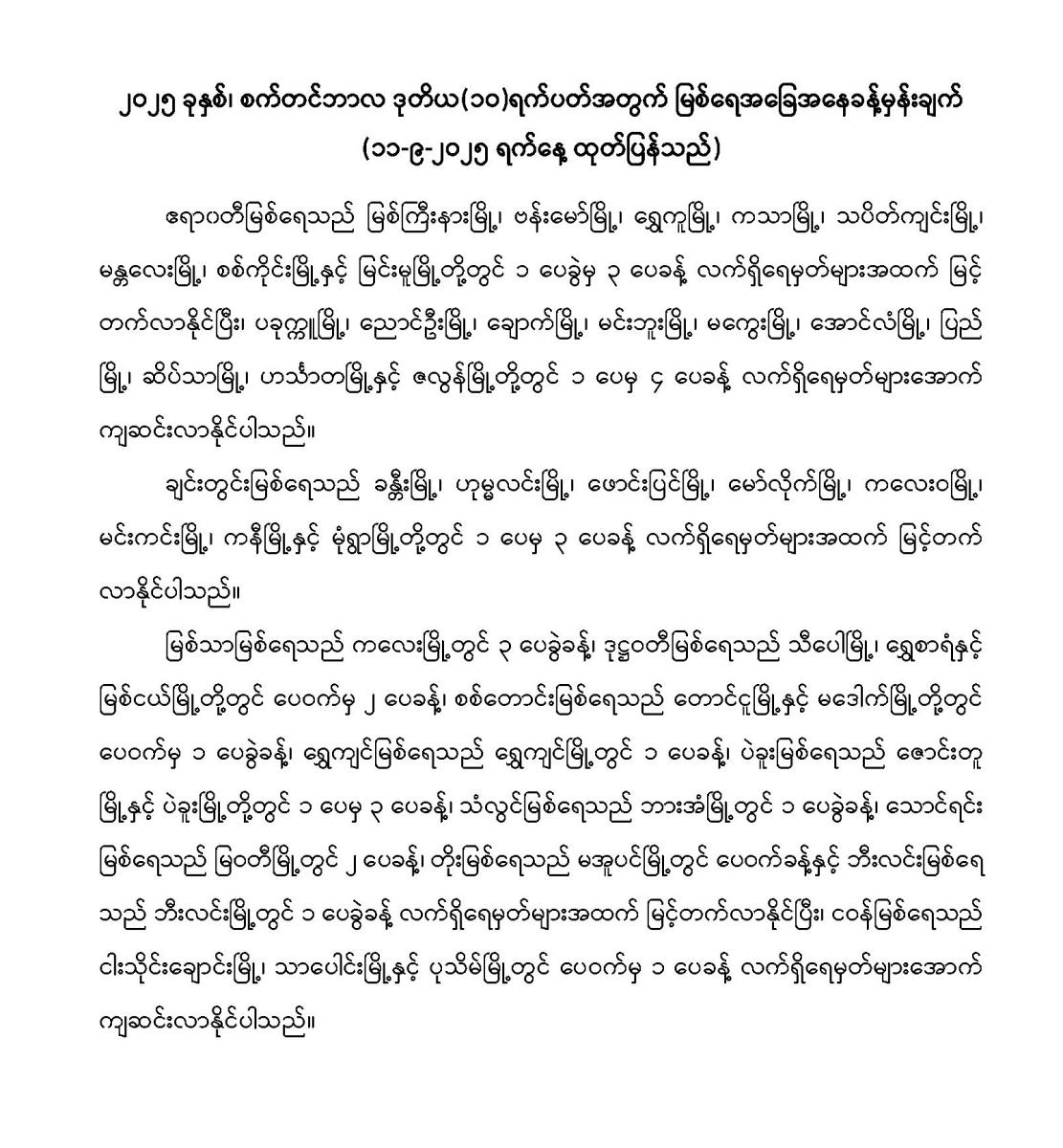၂-၁-၂၀၂၆: ကပ္ပလီပင်လယ်ပြင်တောင်ပိုင်း၊ ဘင်္ဂလားပင်လယ်အော်တောင်ပိုင်းနှင့် အနောက် အလယ်ပိုင်းတို့တွင် တိမ်အသင့်အတင့်မှ တိမ်ထူထပ်နေပြီး ကပ္ပလီပင်လယ်ပြင်မြောက်ပိုင်းနှင့် ကျန်ဘင်္ဂလား ပင်လယ်အော်တို့တွင် တိမ်အနည်းငယ် ဖြစ်ထွန်းနေပါသည်။
