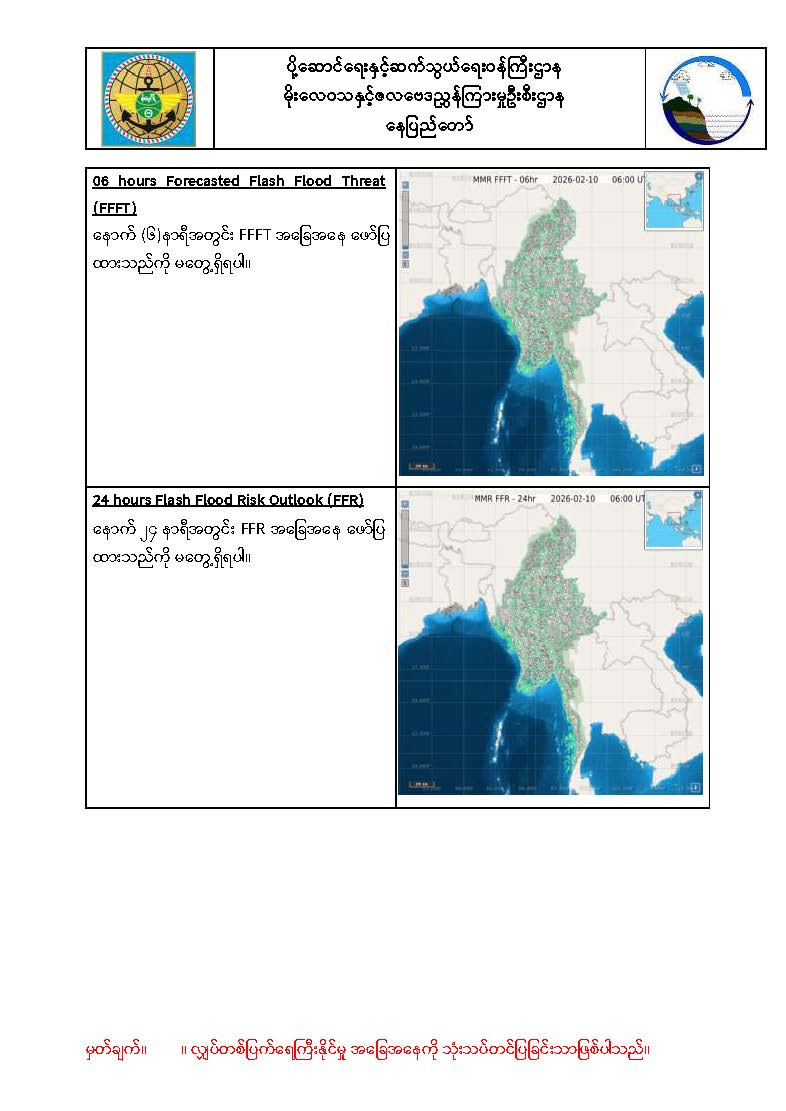 ၁၂-၂-၂၀၂၆ ဘင်္ဂလားပင်လယ်အော်မြောက်ပိုင်းတွင် တိမ်အနည်းငယ် ဖြစ်ထွန်းနေပြီး ကပ္ပလီပင်လယ်ပြင်နှင့် ကျန်ဘင်္ဂလားပင်လယ်အော်တို့တွင် တိမ်အသင့်အတင့်မှ တိမ်ထူထပ်နေပါသည်။