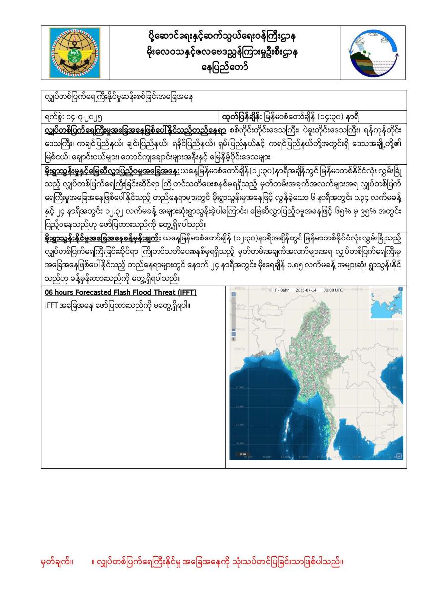 ၇-၁၁-၂၀၂၅: ဘင်္ဂလားပင်လယ်အော်အနောက်အလယ်ပိုင်းနှင့် အနောက်မြောက်ပိုင်းတို့တွင် တိမ်အနည်းငယ် ဖြစ်ထွန်းနေပြီး ကပ္ပလီပင်လယ်ပြင်နှင့် ကျန် ဘင်္ဂလားပင်လယ်အော်တို့တွင် တိမ်အသင့်အတင့်မှ တိမ်ထူထပ်နေပါသည်။