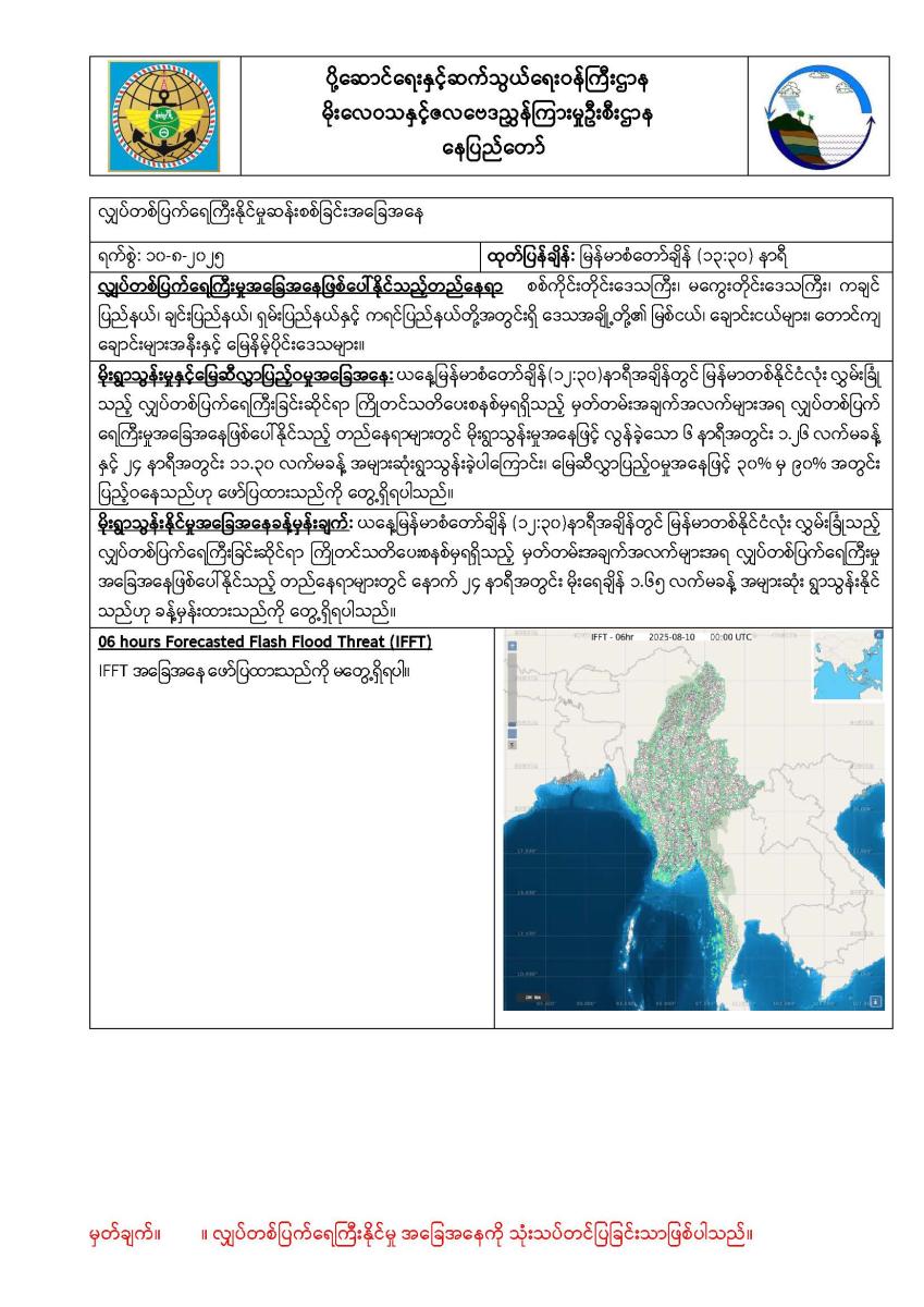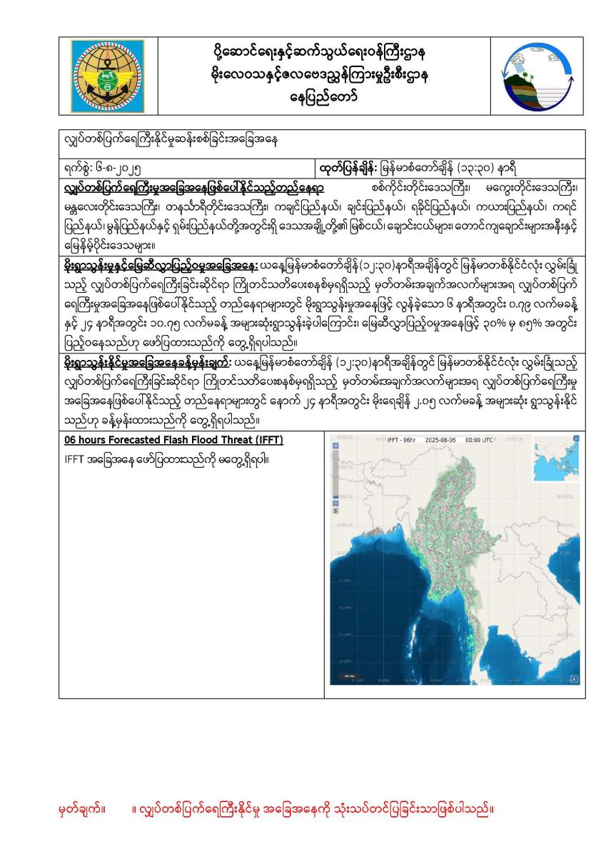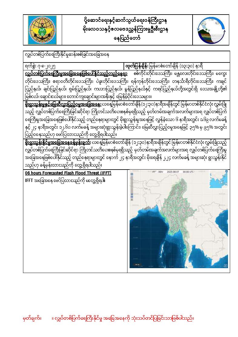 ၇-၁၁-၂၀၂၅: ဘင်္ဂလားပင်လယ်အော်အနောက်အလယ်ပိုင်းနှင့် အနောက်မြောက်ပိုင်းတို့တွင် တိမ်အနည်းငယ် ဖြစ်ထွန်းနေပြီး ကပ္ပလီပင်လယ်ပြင်နှင့် ကျန် ဘင်္ဂလားပင်လယ်အော်တို့တွင် တိမ်အသင့်အတင့်မှ တိမ်ထူထပ်နေပါသည်။