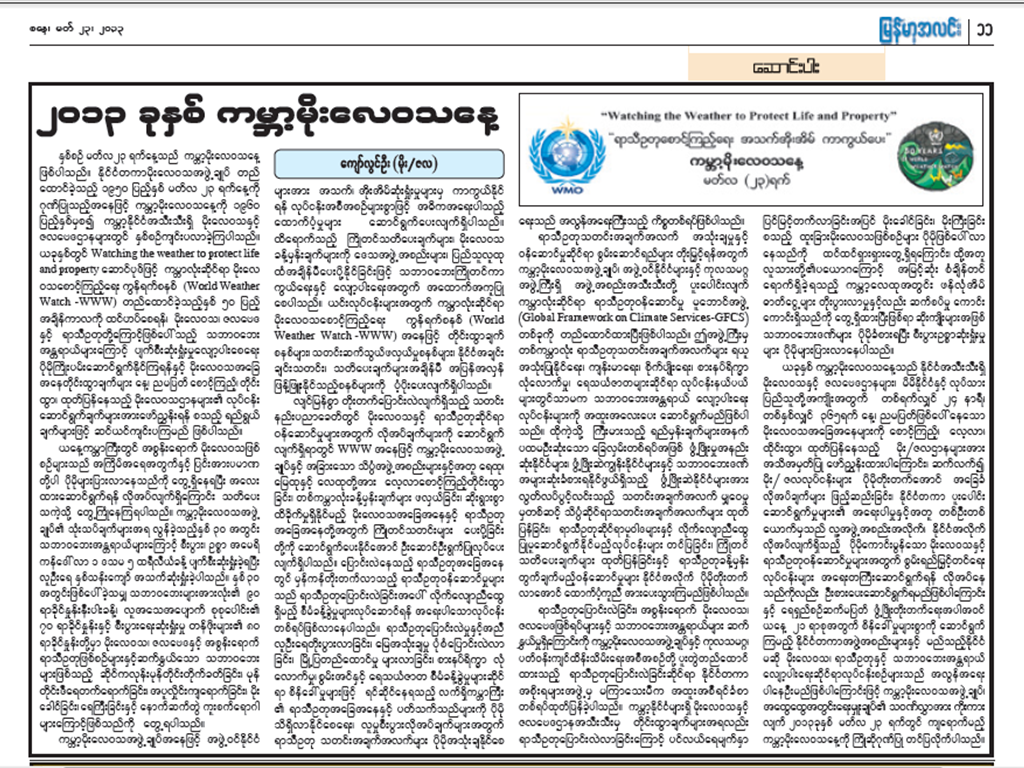 ၂၀၁၃ခုနှစ်၊ ကမ္ဘာ့မိုးလေဝသနေ့ဆောင်းပါး၊ ကျော်လွင်ဦး(မိုးဇလ)
