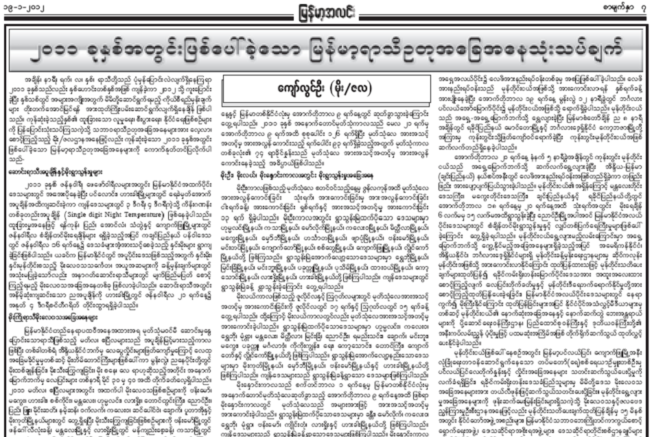 ၂၀၁၁ ခုနှစ်အတွင်း ဖြစ်ပေါ်ခဲ့သော မြန်မာ့ရာသီဥတု အခြေအနေသုံးသပ်ချက်(၂)၊ ကျော်လွင်ဦး(မိုး/ဇလ)