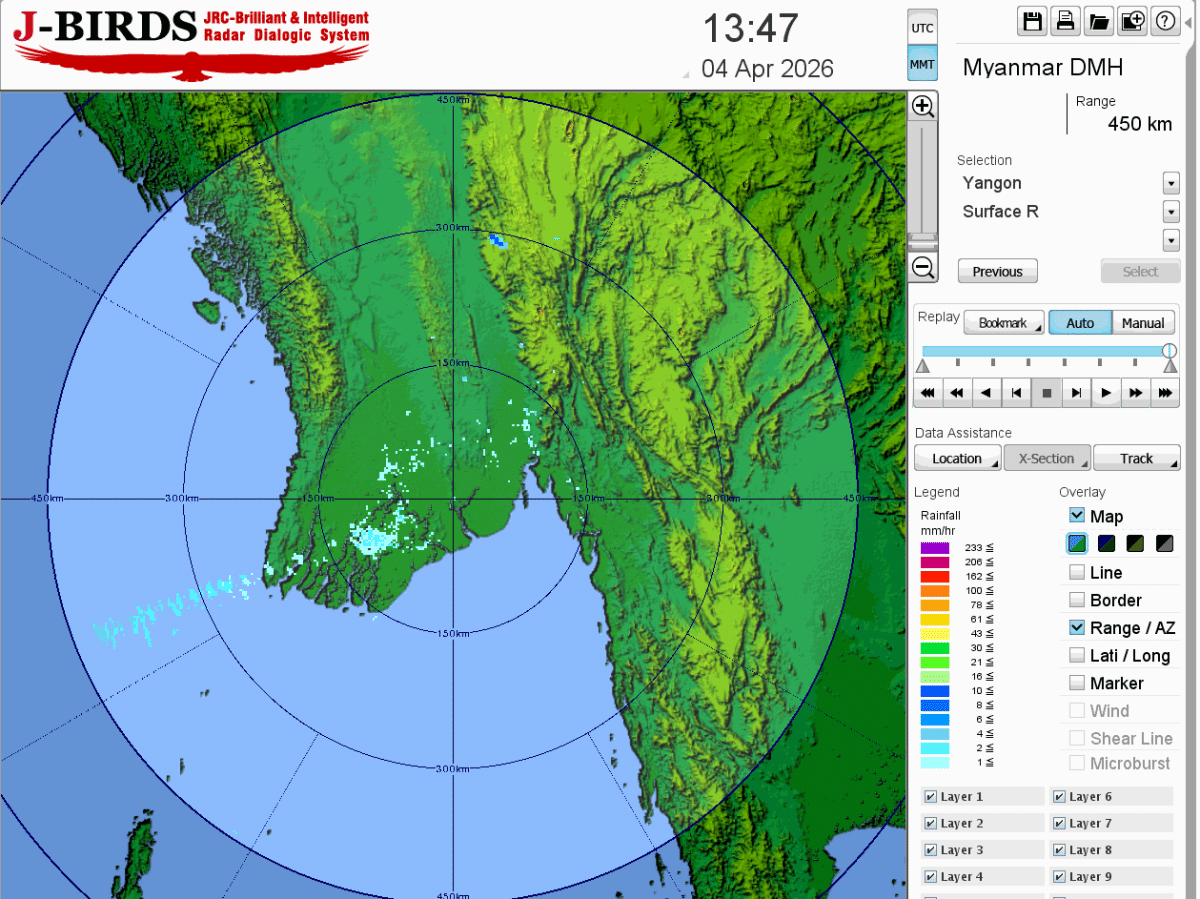 (၁၆-၄-၂၀၂၆) ကပ္ပလီပင်လယ်ပြင်မြောက်ပိုင်းနှင့် ဘင်္ဂလားပင်လယ်အော်အရှေ့အလယ်ပိုင်း တို့တွင် အများအားဖြင့် သာယာနေပြီး ကပ္ပလီပင်လယ်ပြင်တောင်ပိုင်းနှင့် ကျန်ဘင်္ဂလားပင်လယ်အော်တို့တွင် တိမ်အနည်းငယ်မှ တိမ်အသင့်အတင့် ဖြစ်ထွန်းနေပါသည်။