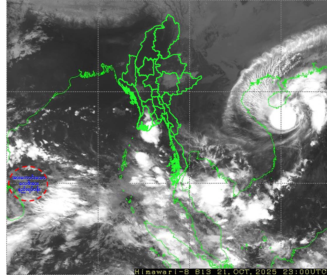 “ယနေ့မြန်မာစံတော်ချိန် ၀၅:၃၀ နာရီအချိန် တိုင်းထွာချက်များအရ ဘင်္ဂလားပင်လယ်အော်အနောက် တောင်ပိုင်းတွင် ဖြစ်ပေါ်နေသော အားကောင်းသောလေဖိအားနည်းရပ်ဝန်း (Well Marked Low Pressure Area)သည် အနောက်-အနောက်မြောက်ဘက်သို့ ရွေ့လျားခဲ့ပြီး ဘင်္ဂလားပင်လယ်အော် အနောက်တောင်ပိုင်း(သီရိလင်္ကာနိုင်ငံမြောက်ပိုင်းကမ်းလွန်)သို့ရောက်ရှိခဲ့ပါသည်။ အဆိုပါ အားကောင်းသော လေဖိအားနည်းရပ်ဝန်းသည် အနောက်-အနောက်မြောက်ဘက်သို့ ဆက်လက်ရွေ့လျားနိုင်ပြီး ယနေ့ ညနေပိုင်းတွင် ဘင်္ဂလားပင်လယ်အော်အနောက်တောင်ပိုင်းနှင့် ယင်းနှင့်ဆက်စပ်လျက်ရှိသော ဘင်္ဂလား ပင်လယ်အော်အနောက်အလယ်ပိုင်း(အိန္ဒိယနိုင်ငံ၊ တမီးနာဒူးမြောက်ပိုင်းကမ်းလွန်နှင့် အင်ဒရာပရာဒေ့ရှ် တောင်ပိုင်း ကမ်းခြေ)တို့၌ မုန်တိုင်းငယ်အဖြစ်သို့လည်းကောင်း၊ ထိုမှတစ်ဆင့် အနောက် - အနောက် မြောက်ဘက်သို့ ရွေ့လျားနိုင်ပြီး ပိုမိုအားကောင်းလာနိုင်ကာ ၂၃-၁၀-၂၀၂၅ ရက်နေ့တွင် အိန္ဒိယနိုင်ငံ၊ တမီးနာဒူးမြောက်ပိုင်းနှင့် အင်ဒရာပရာဒေ့ရှ်တောင်ပိုင်းကမ်းခြေတို့သို့ ရောက်ရှိနိုင်သည်ဟု ခန့်မှန်းရ ပါသည်။”