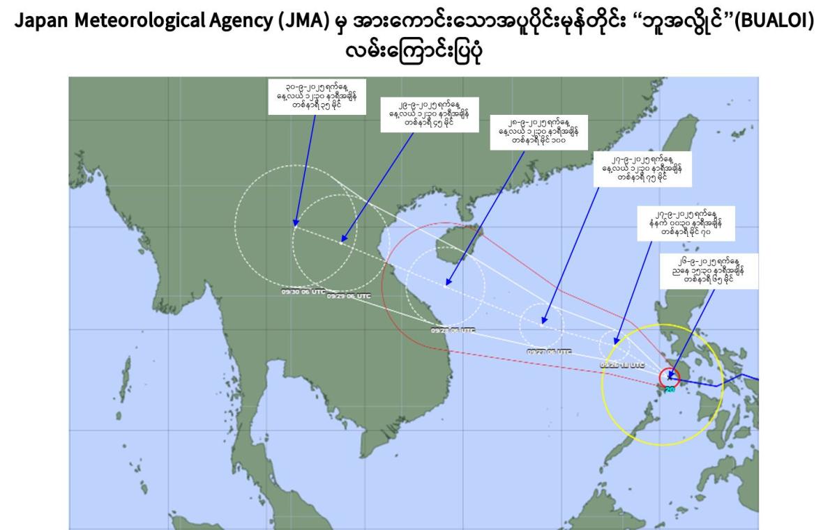 According to the observations at 15:30 hrs MST today, the Severe Tropical Storm “BUALOI” over the Philippines sea is likely to move west-northwestwards, may reach South China Sea on 27-9-2025 and may intensify into a Typhoon. There after it is likely continue to move west-northwestwards and may cross over the northern coastal areas of Vietnam in the night of 28-9-2025.