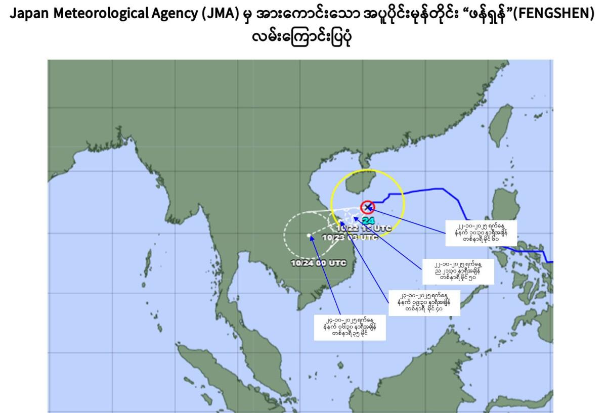 According to the observations at 10:30 hrs MST today, the Severe Tropical Storm “FENGSHEN” over South China Sea has moved West-Southwestwards and is centered at about 140 Nautical miles Northeast of Da Nang (Vietnam).
