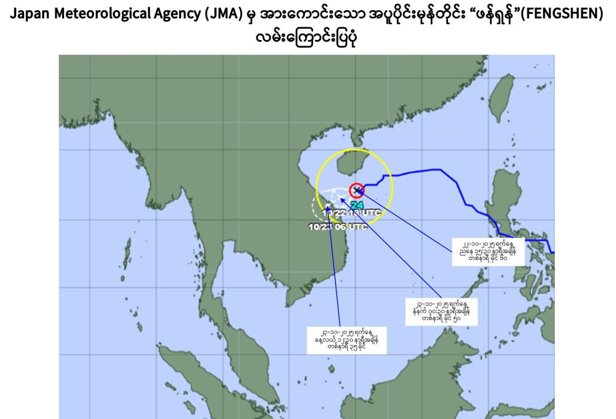 According to the observations at 15:30 hrs MST today, the Severe Tropical Storm “FENGSHEN” over South China Sea has moved West-Southwestwards and is centered at about 125 Nautical miles Northeast of Da Nang (Vietnam).