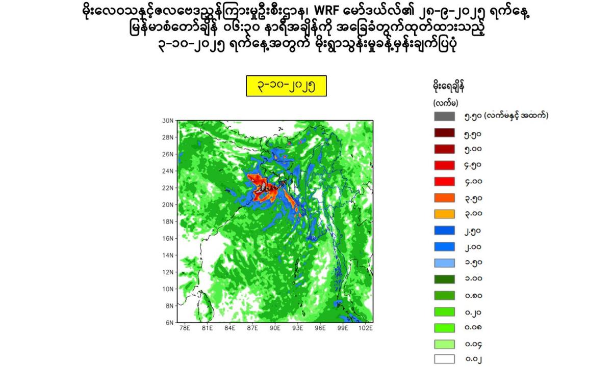 People should be awared the natural disasters such as the heavy rainfall with strong wind, thunder, Lightning strike, lightning, hails, flash flood and landslide in the hilly areas and near small rivers and to make necessary preparations for inland water transport, domestic flight and irrigation dams.