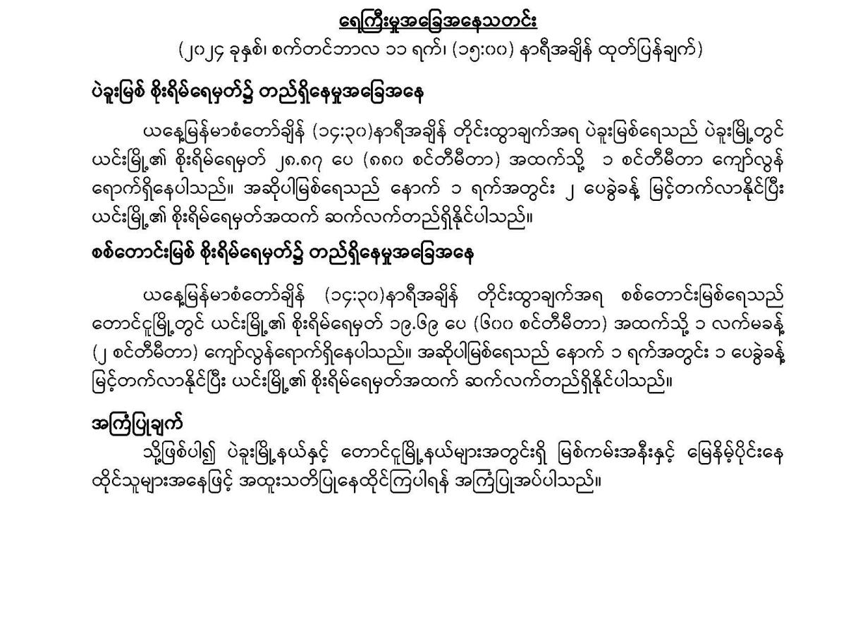 ရေကြီးမှုအခြေနေသတင်း
