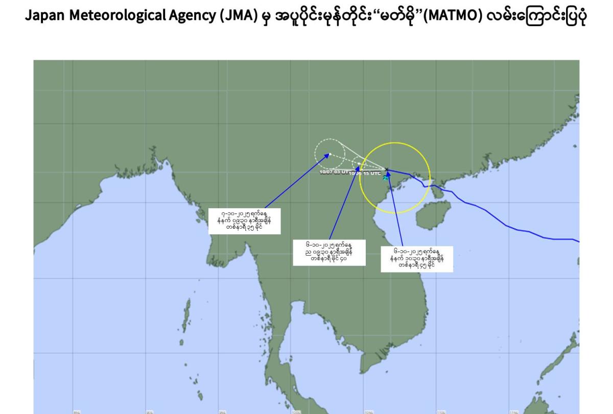 According to the observations at 10:30 hrs MST today, the Tropical storm “MATMO” crossed in the interior part of Guangxi, Southern China has moved West-Northwestwards and reach interior part of Guangxi and boundary areas of Northern Vietnam. It is likely to move Westwards and continue to cross over Northern Vietnam and downgraded into a Land Depression during next 12 hrs and cross over Yunnan, China.