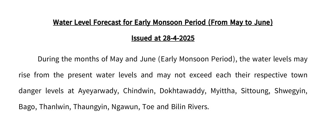 Water Level Forecast for Early Monsoon Season, 2025
