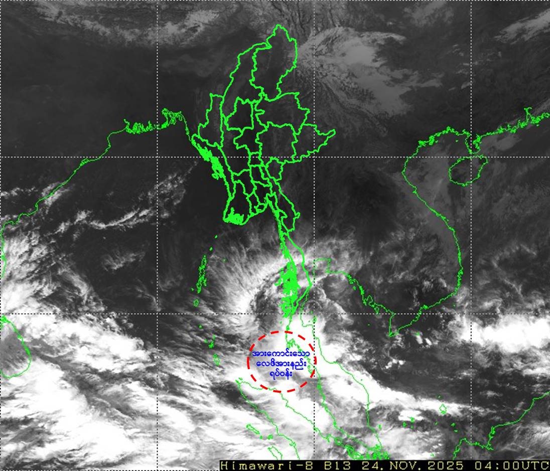 According to the observations at 10:30 hrs MST today, the Well Marked Low Pressure Area over the South Andaman Sea and adjoining Strait of Malacca still persists. It is likely to move West-Northwestwards and intensify into a depression over the Southeast Bay of Bengal and adjoining South Andaman Sea. Due to the Well Marked Low Pressure Area, occassional squalls with rough seas will be experienced in Gulf of Mottama, off and along Mon-Taninthayi Coasts. Surface wind speed in squall may reach 35 mph. Wave height will be about 9-11 feet in Gulf of Mottama, off and along Mon-Taninthayi Coasts.